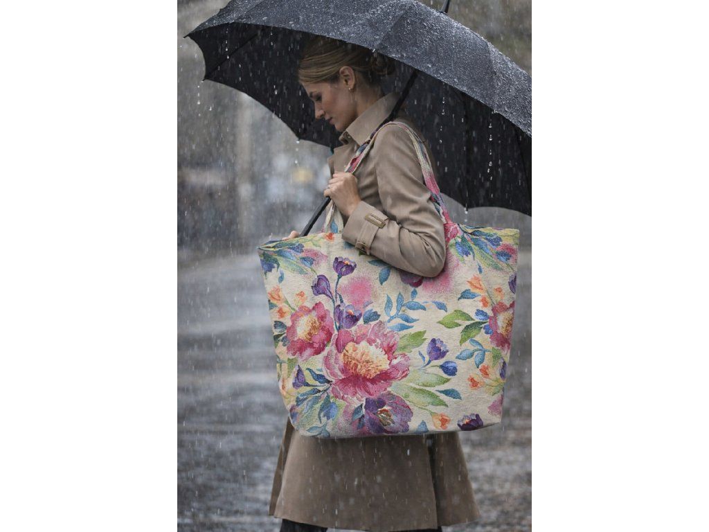 Elegantní taška z gobelínu s výrazným květinovým motivem. Každý kus je originál.