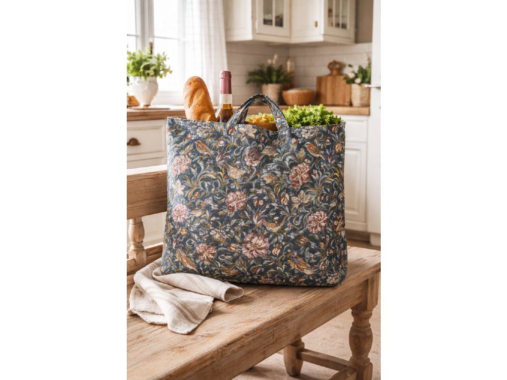 Elegantní taška z gobelínu s krásným květin a ptáčků na tmavém podkladu. Každý kus je originál.